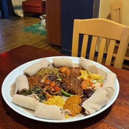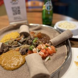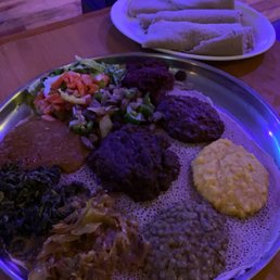 Three of us got some veggie sambusas (and then we ordered more of those because WOW) and the Tabor. The Special Tibbs was so great that we asked for a separate order of it in chicken (lamb, beef, or chicken). We "bothered" our waiter quite a bit and he didn't mind a bit. He was so caring and kind. It was such a neat little spot and with culturally appropriate music playing. Just a while vibe. 1000% will be returning!